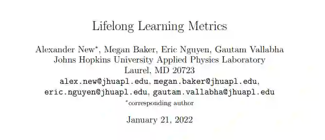 DARPA终身学习机器(L2M)计划旨在推动人工智能(AI)系统的发展,使其能够不断学习(和改进),利用一项任务的数据来提高另一项任务的性能,并以一种计算上可持续的方式做到这一点。该计划的参与者开发了能够执行各种功能的系统,包括自动驾驶、实时战略和无人机模拟。这些系统具有不同的特点(例如,任务结构、生命周期),该计划的测试和评估团队面临的直接挑战是衡量这些不同环境下的系统性能。本文件是与DARPA和项目执行者紧密合作开发的,概述了构建和描述执行终身学习方案的代理性能的形式主义。