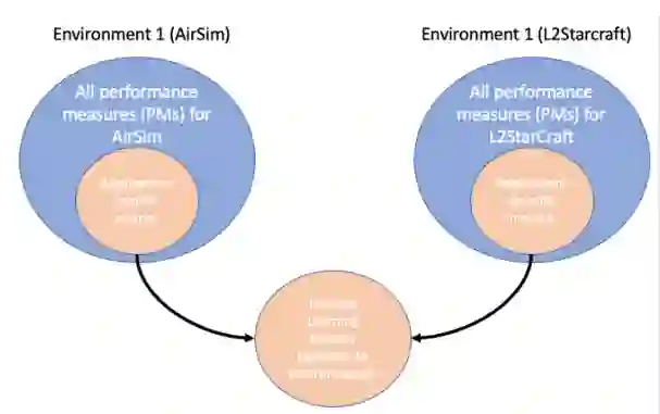 图 2:AirSim 和 L2StarCraft 等环境定义了性能指标。其中一些子集被视为特定于应用程序的指标(第 2.3 节),用于计算终身学习指标(第 3 节)。