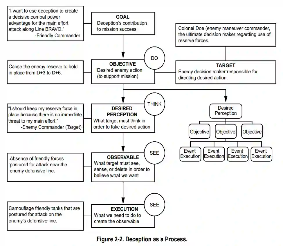 战术欺骗(TAC-D)涉及国防部为支持战术行动而计划和实施的欺骗活动,目的是使敌方决策者采取有利于指挥官近期战术目标的行动或不行动。
