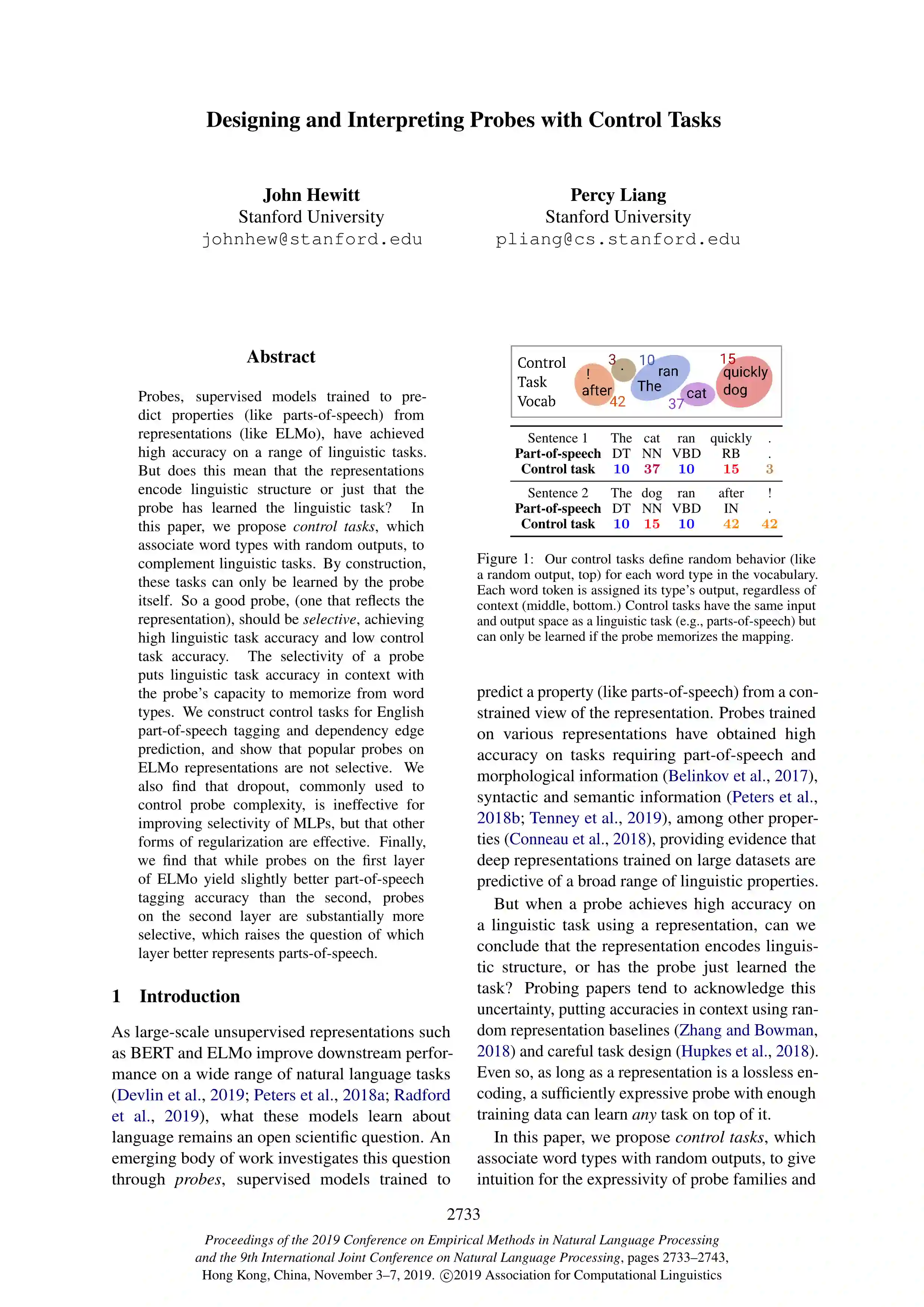 论文题目: Designing and Interpreting Probes with Control Tasks