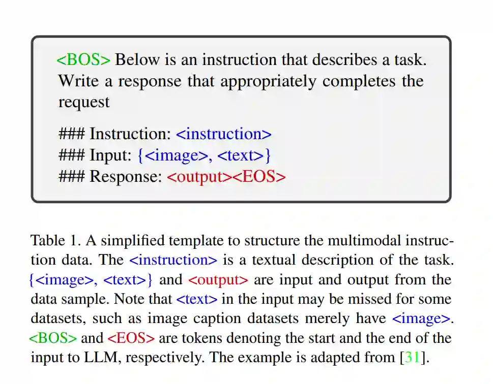 相比之下,传统的多模态模型仍然局限于前两种调整范式,缺乏零样本能力。因此,许多近期的研究[13, 21, 22]已经探讨了如何将LLM中指令微调的成功应用扩展到多模态。为了从单模态扩展到多模态,对数据和模型都需要进行相应的调整。对于数据,研究人员通常通过调整现有的基准数据集[23-28]或通过自我指导[13,21,29]来获取M-IT数据集。对于模型,一种常见的方法是将外部模态的信息注入到LLM中,并将它们视为强大的推理器。相关工作要么直接将外部嵌入与LLM对齐[21, 23-25, 27, 28, 30-32],要么求助于专家模型将外部模态转换为LLM能够处理的自然语言[33, 34]。以这种方式构建,这些工作通过多模态指令微调将LLM转变为多模态聊天机器人[13, 21, 22, 33, 35]和多模态通用任务解决器[23, 24, 26]。 在本节的后续部分,我们首先提供基础知识(第3.1.2节)。在转向M-IT的描述之前,我们还额外介绍了在M-IT之前的常见过程,即对齐预训练(第3.1.3节)。然后,我们按照图2所示的结构安排剩余的内容:我们首先介绍如何收集M-IT数据(第3.1.4节),然后详细讨论MLLM的模型适应,即弥合不同模态之间差距的各种方式(第3.1.5节)。最后,我们介绍评估指令调整后的MLLM的评估方法(第3.1.6节)。