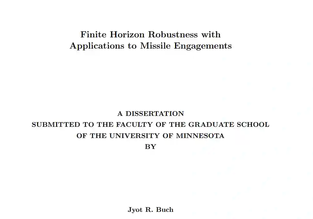 本论文为有限时间范围内的鲁棒性分析和综合提供了理论和计算工具。这项工作的动机之一是对导弹拦截系统性能进行可靠评估,这也将有助于此类系统的稳健设计。典型的性能指标具有无限时间范围的性质,以稳定性为中心,并依赖于频域概念,如增益/相位裕度。对于在有限时间范围内运行的系统(如许多发射场景),这些指标可能不够充分。相反,本论文侧重于时域指标,例如,在考虑干扰、模型不确定性/可变性和初始条件的影响的同时,对系统在视界最后时间的状态进行约束。建议的方法是沿轨迹对动力学进行数值线性化,以获得线性时变(LTV)系统。然后在线性化系统上进行分析或综合,该系统可捕捉到标称轨迹周围的一阶扰动。与原始非线性模型相比,这种方法牺牲了一些精度,但却能使用线性系统工具。建议的最坏情况 LTV 分析还提供了具体的不良干扰和不确定参数,可在高保真非线性仿真中进一步研究。