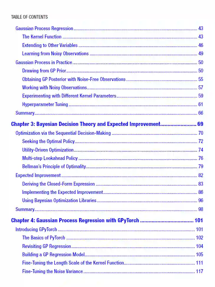 这本书涵盖了流行的贝叶斯优化技术的基本理论和实现,以直观和充分说明的方式。本书涵盖的技术将使你能够更好地调整机器学习模型的超参数,并学习样本高效的全局优化方法。