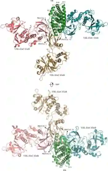 图10:从两个视图构成的由ER,VHL-EloC-EloB和PROTAC(PROTAC 2,6和10)构成的三元复合物的计算模型