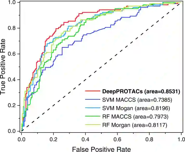 图3:DeepPROTACs、SVM和RF模型的ROC曲线