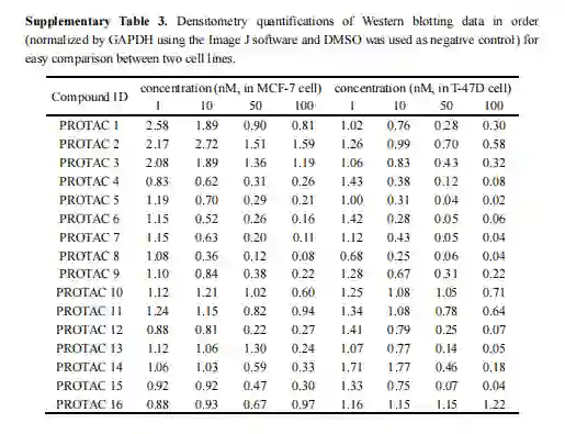 为了验证DeepPROTACs的预测能力,本文构建了一个包含16个使用VHL E3连接酶降解ER的PROTACs的实验数据集(图7)。