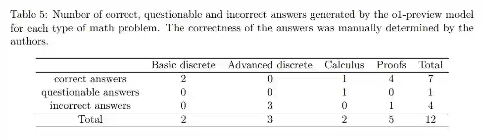 表 5 列出了 o1-preview 在各类问题中的答题情况。