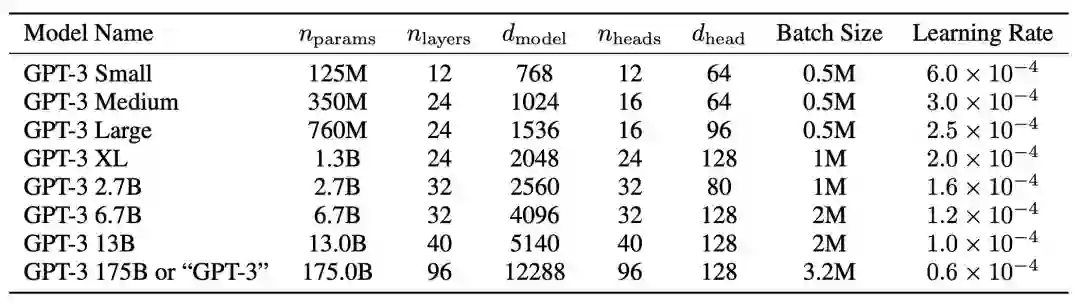 作者们训练了以下几种尺寸的模型进行对比: