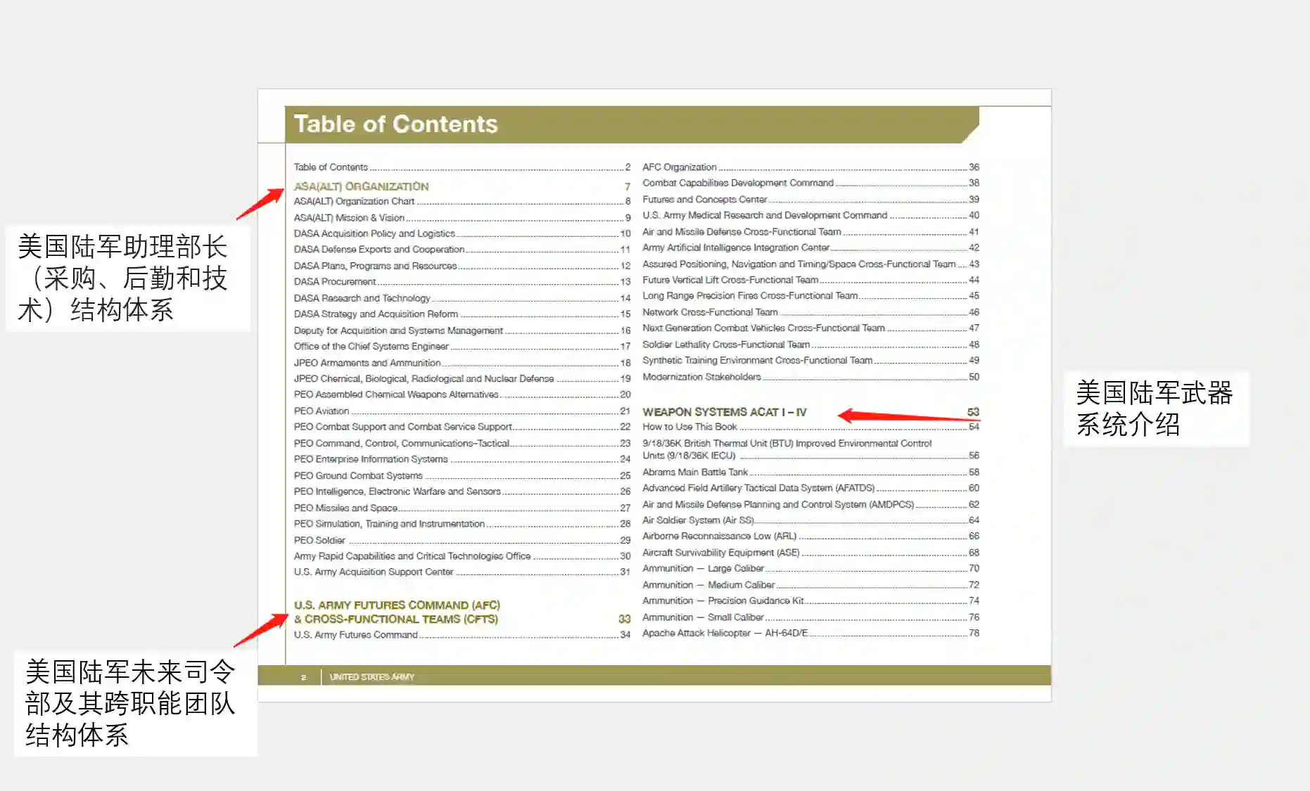 该出版物旨在让你了解美国陆军当前和未来的许多武器系统和设备计划。我们在过去四年中进行了最大的转型变革,以实现现代化和建立一支具有多领域能力的部队。我们坚定不移地致力于在当今和未来的战场上保持对对手的强大优势和决定性的技术优势。战士们依靠我们在正确的时间将正确的装备送到他们手中,以阻止冲突或战斗并赢得我们国家的战争。