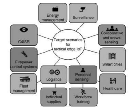 长期以来,国防领域一直是众多新兴技术的源泉。获得战场优势一直是探索和尝试激进想法的驱动因素。第一次海湾战争后,时任美国海军作战司令的威廉-欧文斯上将在美国国家安全研究所发表的一篇研究文章中提出了 “系统簇”这一概念,从而使这种想法开始成形。他阐述了数据和网络改变作战的方式。这一观点转化为 “网络中心战”概念,它是三个领域的融合,即物理领域(进行演习并从传感器获取数据)、信息领域(传输和存档数据)和认知领域(处理和分析数据)。在这一概念提出二十多年后的今天,世界各地的军事领导人和国防专家都对这一概念的实施持乐观态度,这主要是由于物联网技术的成熟。乌克兰地面部队广泛使用标枪反坦克导弹和 “弹簧刀 ”隐形导弹来挑战强大的俄罗斯装甲部队,这就是物联网技术在战区成功应用的例证。