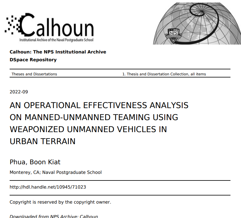近年来,各国军队加强了整合无人驾驶技术的工作,以提高有人驾驶-无人驾驶团队(MUM-T)的能力。由于一些国家的战斗年龄人口正在减少,军队正在转向容易获得的、具有成本效益的和复杂的无人驾驶技术。MUM-T拥有巨大的潜力,不仅可以缓解军队的人力短缺,还可以提高作战能力。这篇论文研究了MUM-T在前线的有效性,具体到步兵小组支持城市地形的进攻行动。一个基于智能体的仿真被用来模拟有无无人驾驶地面车辆(UGV)支持一个步兵连MUM-T作战行动。对超过76,800次的模拟战斗进行了分析。据观察,MUM-T概念可以极大地提高战斗力,通过增加敌人的伤亡来评估。还观察到UGV的重装时间、武器精度和自身的力量结构对步兵的杀伤力和生存能力有很大影响。这项分析的结论是,在小单位战术层面实施MUM-T对提高整体作战性能有很大潜力。未来,作战模型可以被整合到未来的军事演习中,这样就可以对模拟的结果进行验证和确认。