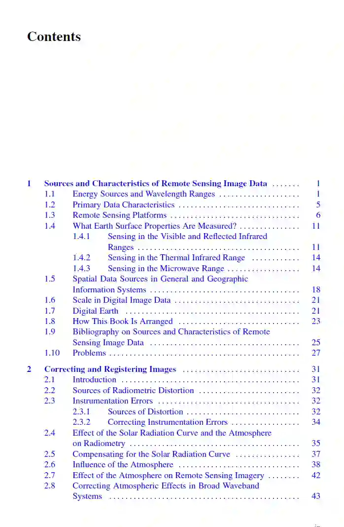 遥感数字图像分析提供了用于处理和解译遥感图像数据的方法的综合处理。过去十年来,用于遥感图像分析的算法不断取得重大发展,尽管许多基本原理基本上保持不变。与之前的版本一样,这一新版再次提供了保留价值的材料,但也包括从业务遥感角度介绍的更新技术。 这本书是设计为一个教学文本高年级本科生和研究生,并作为一个基本处理那些从事研究使用数字图像分析在遥感。演示水平是为数学非专业人士准备的。由于遥感的大量业务用户来自地球科学界,因此文本的定位与他们的背景相称。 本章通过获取遥感图像的手段、校正技术和解释方法进行逻辑进展。本书的重点是这些方法的应用,每一章都会提供一些已完成的示例,并在最后给出一组问题。