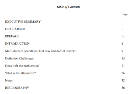 为了使多域作战的概念取得成功,联合部队之间需要有一种共同的语言,而且这一概念决不能以牺牲在现有领域的机动性或通过创造一个新的领域来放弃单一领域的主导地位。并非所有的问题都需要一个僵化的理论来克服,多领域作战需要模糊性,以最大限度地发挥其潜力。如果不这样做,就有可能使概念僵化,使概念的效用受挫。
