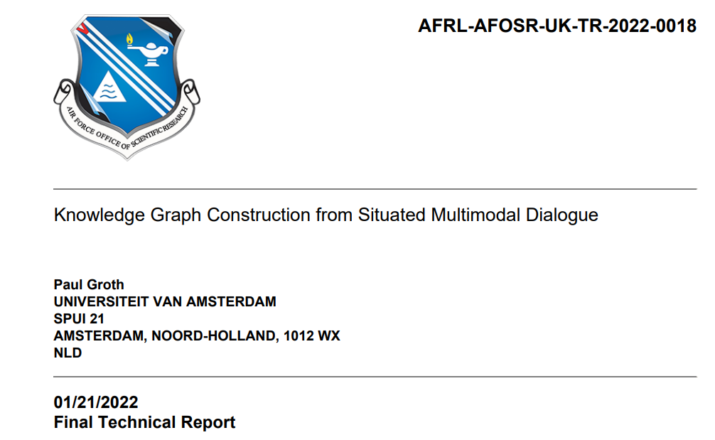 本报告介绍了 "情景多模态对话知识图谱构建 "项目的成果。该项目旨在为从整体上理解以计算为媒介的对话奠定基础。在协调、规划和行动方面,这种对话是团队绩效的基本组成部分[12, 1]。在这样的环境中(如共享聊天或电子邮件),重要的不仅是要了解对话本身的来龙去脉,还要了解对话是如何置身于一个更大的背景中的,无论是共同的文档还是共享的背景信息。本项目假设,知识图谱是一种强大的方法,不仅可以捕捉此类对话的结构,还可以捕捉提供对话所处情境的信息。知识图谱--图式结构的知识库,可捕捉有关实体、实体属性和实体间关系的信息[8, 15],是一种常用的整合信息、促进下游分析和支持其他人工智能任务的方法[11, 9]。这个问题可以用研究问题来概括: 我们能否学会从基于对话的情景多语言对话中检测出个人、个人类型、他们是如何互动的以及他们互动的内容。为奠定这一基础,该项目有三个目标: