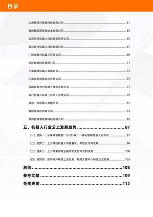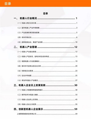 当前中国机器人产业呈现良好发展势头,产业规模快速增长,“十三五”以来年均复合增长率约为15%;产业格局不断优化,以智能制造、智慧服务为使命与愿景的机器人企业竞相涌现;技术水平持续提升,视觉算法、运动控制、高性能伺服驱动、高精密减速器等关键核心技术加快突破,整机功能和性能显著增强;集成应用大幅拓展,机器人在工厂产线、仓储物流、教育娱乐、清洁服务、安防巡检、医疗康复等领域实现规模应用。 然而,机器人产业的发展依然面临着一些挑战:一是机器人的智能化水平过度依赖于本体的算力与小样本学习的局限性,依赖于“云-边-端”一体化智能机器人的突破;二是机器人本体仍然不够轻量,柔性化程度不高,执行精度受限,除了“云-边-端”的协同有助于提升相关性能外,还有赖于可变材料和特殊机构设计的突破;三是机器人的成本仍然较高,中小企业规模化使用仍然较为困难,一方面有赖于制造工艺的优化及场景的规模化应用,使得价格不断下行;另一方面RaaS理念逐步被国内外接受,租赁服务以及区域工厂的探索让中小企业“用得上、用得起、用得好”机器人服务。 在此背景下,阿里云加速器联合行行查研究中心,协同深创投、元璟资本、璞跃中国等机构以及明星创新企业,积极开展中国机器人行业研究工作,在分析当前我国机器人市场现状与产业图谱的基础上,对人工智能、5G、云计算、边缘计算等新兴技术赋能机器人智能化、轻量化、柔性化发展进行了理性探讨,结合阿里云加速器企业案例探讨了机器人企业的上云实践与成效,提出机器人云上发展趋势。 国内机器人产业市场规模