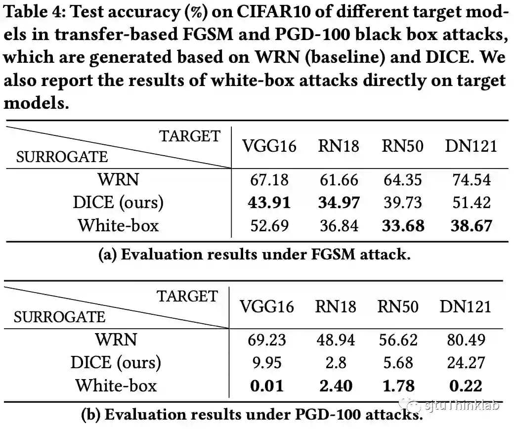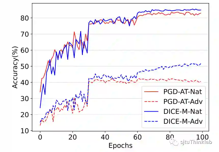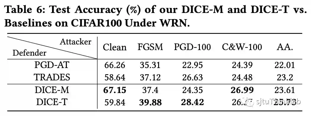 图 6. 对抗鲁棒性实验 (CIFAR-100)图 7. DICE改善鲁棒泛化性