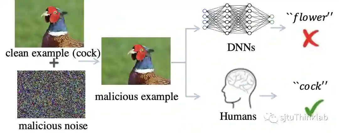 图 1. 深度神经网络在恶意攻击下的脆弱性