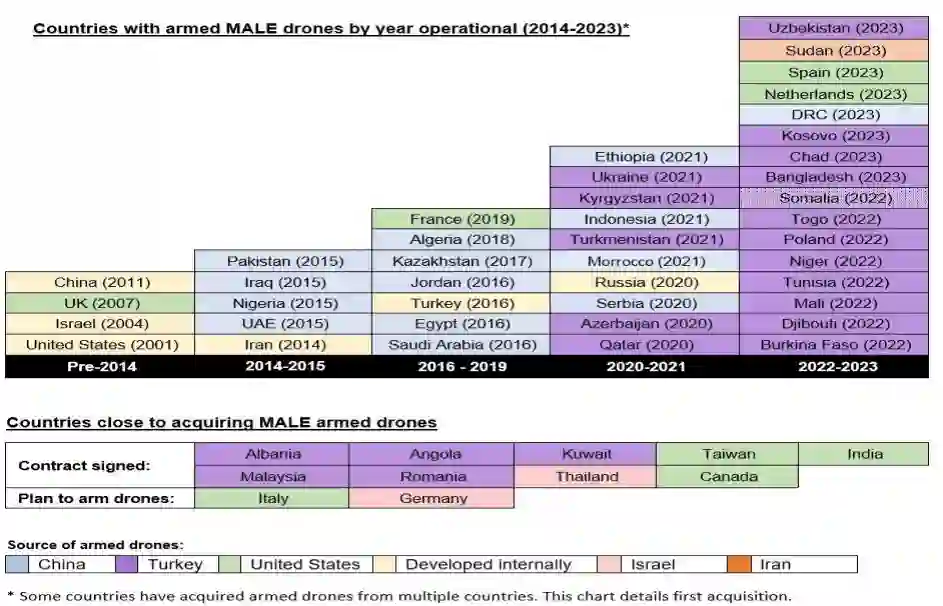 资料来源 "谁拥有武装无人机?" 英国无人机大战。2024 年 2 月 13 日。