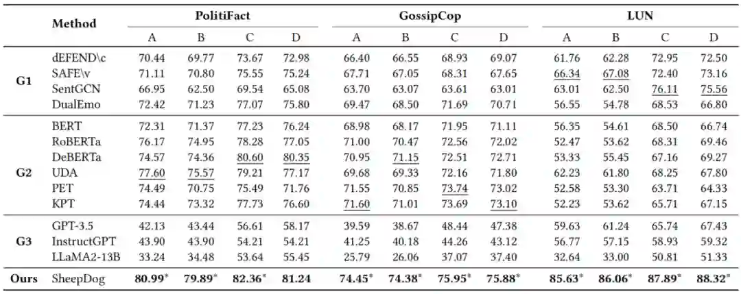 图3 大模型生成的虚假信息 AIGC 虚假信息既可能源于模型“幻觉”导致的事实错误,也可能由恶意用户通过精心设计的提示词(prompt)有意生成误导内容。尤其是在可控生成能力不断增强的背景下,攻击者可通过改写、释义或风格迁移等方式,对虚假文本进行语义保持下的多轮包装,使其语气更中性、逻辑更自然,从而规避语言风格过滤。实证研究表明,风格伪装后的虚假文本可显著降低主流检测模型的识别性能,准确率下降幅度高达 38%。 此外,AIGC生成内容呈现出跨领域、高多样性、多类型错误等特征,覆盖医疗、政治、金融等敏感语境,常伴随虚构事实、伪造引用与因果链断裂等复杂误导策略。这种“高保真伪装”正逐步超越传统检测系统的能力边界,迫切需要引入更强的语义建模与推理机制,提升对深层虚假结构的识别能力。 3.1.2 SheepDog:面向AIGC的风格不变检测机制