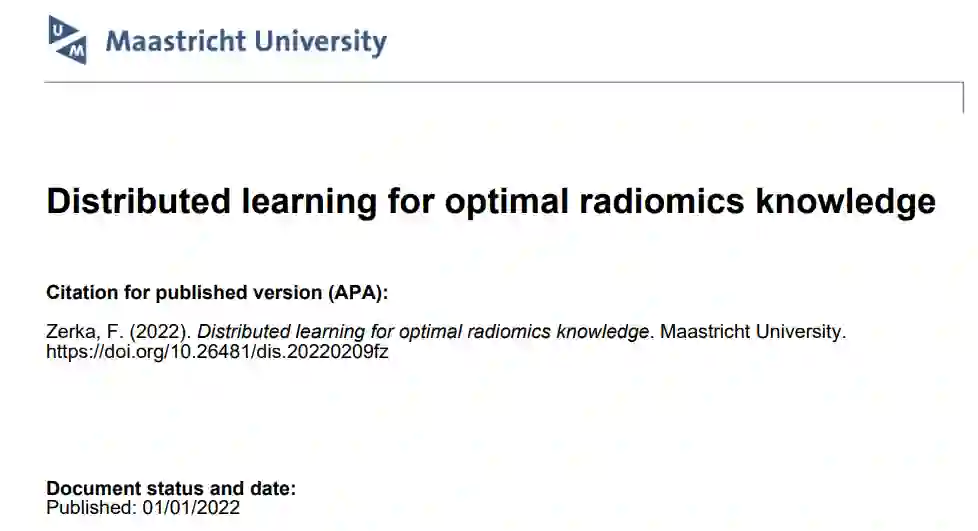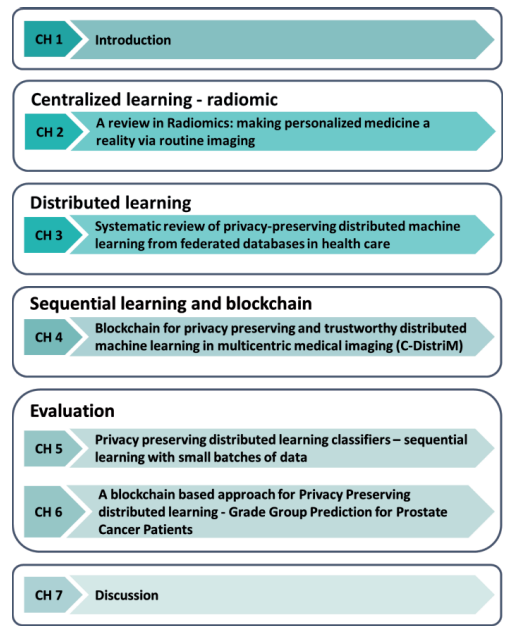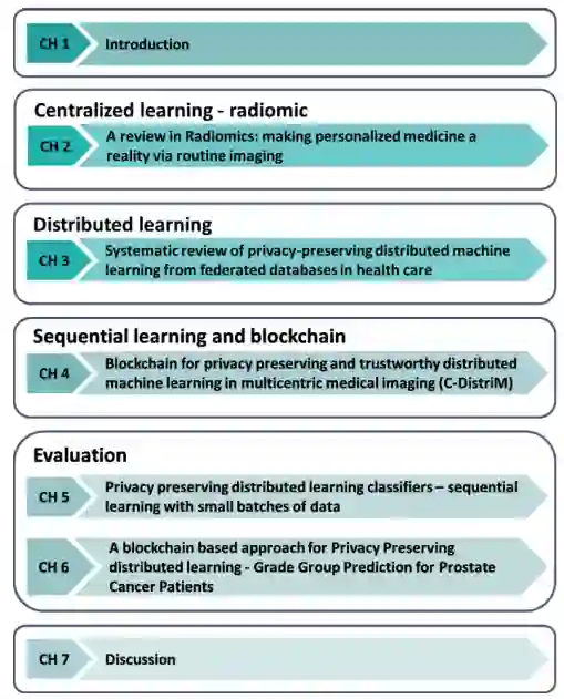 1.集中式学习 - 放射组学:在标准集中式学习方案中详细介绍放射组学,并分析其改进临床决策过程的能力(第 2 章)。