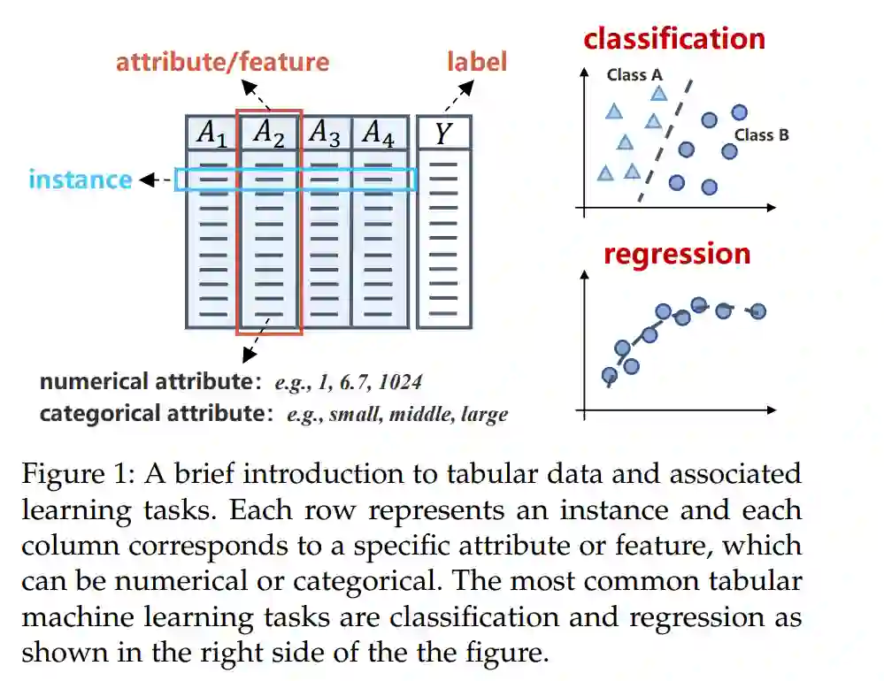 表格数据,以行和列的形式组织,是现实世界中机器学习应用中最常见的数据格式之一,涵盖了金融[1]、医疗健康[2]、教育[3]、推荐系统[4]以及科学研究等多个领域。特别是,面向科学研究的人工智能(AI4science)日益依赖于表格数据,因为许多著名数据集——如基因组学[5]、化学[6]和气候科学[7][8]的数据——自然采用了表格形式。 表格数据本质上以结构化的表格格式组织信息。在本综述中,我们主要关注监督式表格机器学习任务,特别是分类和回归任务。除了结构化的组织形式外,表格数据集通常还包括异质属性[9],涵盖了数值型、分类型或混合型数据类型,这些数据可能是稠密的或稀疏的。此外,许多表格数据集还面临质量问题,如噪声测量、缺失值、异常值、不准确性[10]以及隐私约束[11],这些问题都会使建模过程变得复杂。最常见的监督式表格任务是分类和回归,其中目标分别是从训练数据学习映射到离散或连续目标。如图1所示,每一行代表一个实例(及其对应的标签),而每一列则对应特定的属性或特征[12]。理想情况下,学习到的映射应该具有良好的泛化能力,能够准确地预测从相同底层分布中抽取的新实例的结果。 用于表格数据的机器学习方法多年来经历了显著的发展[13][14][15][16]。最近,深度学习的兴起对计算机视觉[17]和自然语言处理[18]等领域产生了深远的影响,深度神经网络(DNNs)能够直接从原始输入中提取语义表示[19][20][21]。这些学习到的表示不仅提高了泛化能力,还促进了跨相关任务的知识迁移[22]。深度神经网络在建模复杂特征交互和学习丰富层次结构方面的灵活性,激发了将深度学习技术应用于表格数据的巨大兴趣。 事实上,深度神经网络在几十年前就已被应用于表格数据,最初主要针对降维和可视化任务[23][24][25][26],然而在标准的分类和回归问题中,它们通常无法与基于树的方法相匹敌。随后,深度神经网络的进展使得其在各种表格相关应用中取得了显著进展,如点击率预测[27][28]、异常检测[29]、推荐系统[30]以及时间序列预测[31][32]。现代深度学习方法得益于更精心设计的架构、优化的训练策略和高质量的表示,已使深度神经网络在表格数据上的表现得到了复兴,常常与传统的基于树的模型相抗衡甚至超越[33][34][35]。鉴于深度表格建模中涌现出的多种方法,回顾关键因素和当前的表示学习方法已成为越来越必要的任务。 本综述首先介绍表格数据学习的背景,重点突出其中的挑战,并对比深度神经网络与经典方法(特别是基于树的方法)[36][37][38][39]在使用中的优势和局限性进行批判性分析。由于观察到在不同表格数据集上方法性能的不稳定性,我们还讨论了数据集收集、评估和分析的综合策略,旨在为跨多个数据集汇总性能指标建立稳健的标准[40][41][42][43]。 我们将深度表格方法大致分为三种类型:专用方法、可迁移方法和通用方法,区分的标准包括它们训练和部署的数据集的范围,以及它们相应的泛化能力(如图2所示)。专用表格方法与经典的监督模型密切相关,通常在来自相同分布的数据上进行训练和评估。相反,可迁移方法利用从一个或多个源数据集上预训练的模型的知识,随后在目标数据集上进行微调;这里的主要挑战在于解决预训练源与目标任务之间的异质性。最近提出的通用表格方法——受到大型语言模型(LLMs)显著“零-shot”泛化能力的启发——展现出卓越的通用性。这些通用模型可以直接将其学习到的表示应用于下游表格数据集,而无需额外的微调,并通过先进的预训练策略实现稳健的泛化。 尽管从专用模型到通用模型,泛化能力通常会增强,但这并不意味着专用或可迁移方法的价值较低;专用模型在大规模数据集上仍具有优势,而对通用模型进行微调可以进一步提高其预测性能。此外,前两类方法为通用表格模型的进展提供了基础性见解和宝贵的组件。 对于专用方法,已经提出了许多从不同角度进行设计的方案,早期的文献通常根据其架构特征或行为将这些方法进行分类。现有的分类法[44],例如,将专用方法分为基于特征预处理的[33][45]、基于数据增强的[46][47][48][49]、MLP变体[50][34]、专用DNN架构[51][52][53][54][55][56][57][58]、模仿树的方法[59][60][61]、基于token的技术[62][63][33][64][65]、基于正则化的策略[66][67]、以及基于邻域的方法[68][69][35]。然而,这些分类可能显得分散,难以将位于不同组中的方法的核心思想进行联系。与此不同,本综述提出了一种基于表格数据的关键方面——特征、样本和目标——的层次化分类法,提供了一个统一的组织框架。我们的方法强调了在特征级和样本级上获取高质量表示的详细策略。这一统一视角有助于弥合不同方法之间的核心思想,促进更清晰的比较讨论,并可能指导未来更先进的表格模型的设计。