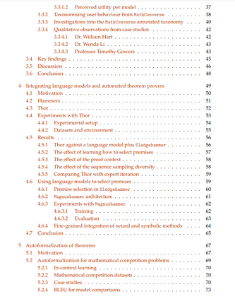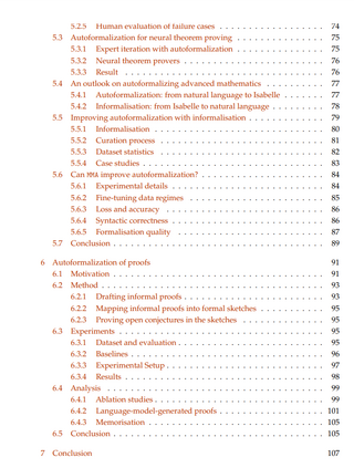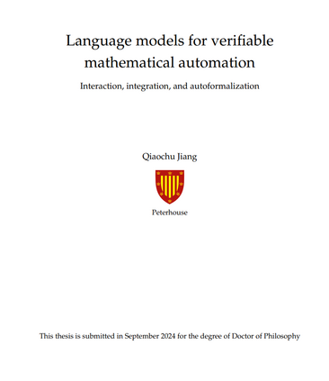 形式化数学推理中的更强自动化提供了可扩展性、可信性和可访问性: 它使得复杂证明的高效验证成为可能,减少了在复杂计算中出错的可能性,允许非专家参与数学概念的探讨,并可能通过机器驱动的探索促进新数学见解的发现。传统上,自动推理器只能使用形式化语言库,无法利用更大规模的自然语言语料库,因为自然语言理解较为困难。尽管已有设计控制自然语言接口与形式语法(例如Naproche),它们最终由于过于僵化,难以广泛应用。另一方面,大型语言模型在语言理解方面表现出色,并且接触到人类历代积累的无数数学文献,这使它们成为理想的自动化工具。现代语言模型已在大量数据上进行了训练,能够执行令人印象深刻的任务数量。语言模型的多功能性使其与传统推理器互补,而传统推理器的僵化性严重限制了它们的广泛应用和易用性。 本论文的目标是回答:如何通过语言模型实现可信的数学推理自动化。 为此,我们提出了一种新的语言模型评估方法,以确定它们在数学推理中的适用场景。基于获得的见解,我们训练语言模型在这些场景下撰写形式化证明,并借助自动定理证明器进行辅助,使用它们将数学定理和证明从LATEX转换为形式化语言。 具体而言: