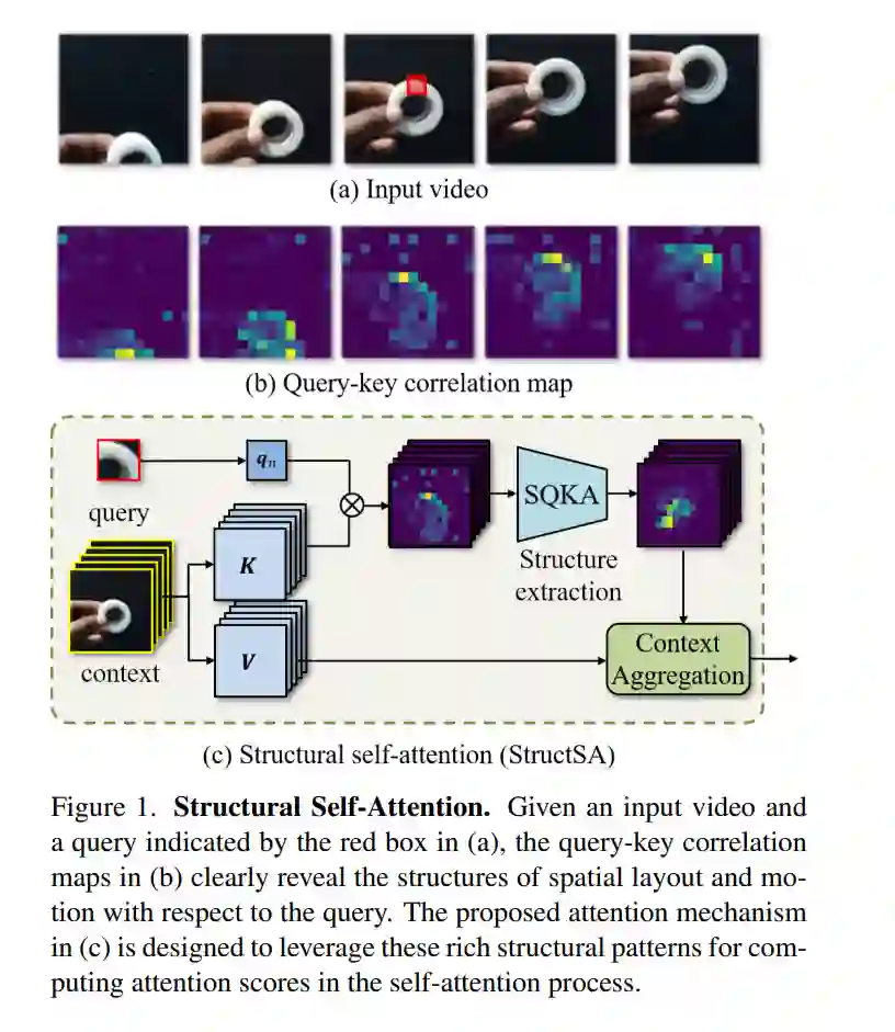 我们引入了一种新的注意力机制,称为结构性自注意力(StructSA),它利用在注意力的关键查询互动中自然出现的丰富相关模式。StructSA通过卷积识别关键查询相关性的时空结构来生成注意力图,并使用它们动态地聚合值特征的局部上下文。这有效地利用了图像和视频中的丰富结构模式,如场景布局、对象运动和对象间关系。使用StructSA作为主要构建块,我们开发了结构视觉变压器(StructViT),并评估其在图像和视频分类任务上的有效性, 在ImageNet-1K、Kinetics-400、Something-Something V1 & V2、Diving-48和FineGym上取得了最先进的结果。
