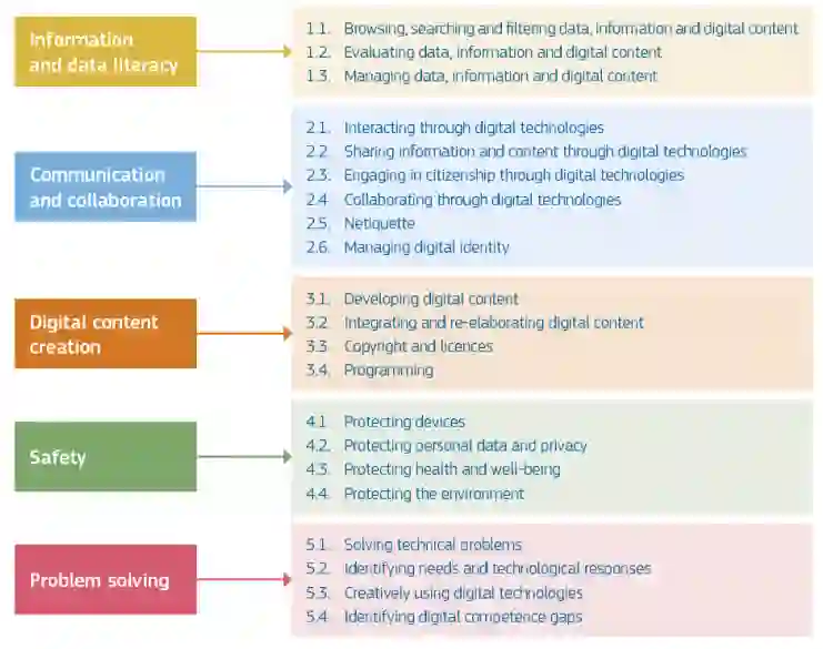 “数字能力涉及自信、批判和负责任地使用和参与数字技术,用于学习、工作和参与社会。它包括信息和数据素养、沟通与协作、媒体素养、数字内容创建(包括编程)、安全(包括数字福祉和与网络安全相关的能力)、知识产权相关问题、问题解决和批判性思维。” (理事会关于终身学习关键能力的建议,2018 年 5 月 22 日,ST 9009 2018 INIT)