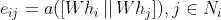 对于中心节点,我们需要逐个计算它与邻居节点之间的注意力系数:
