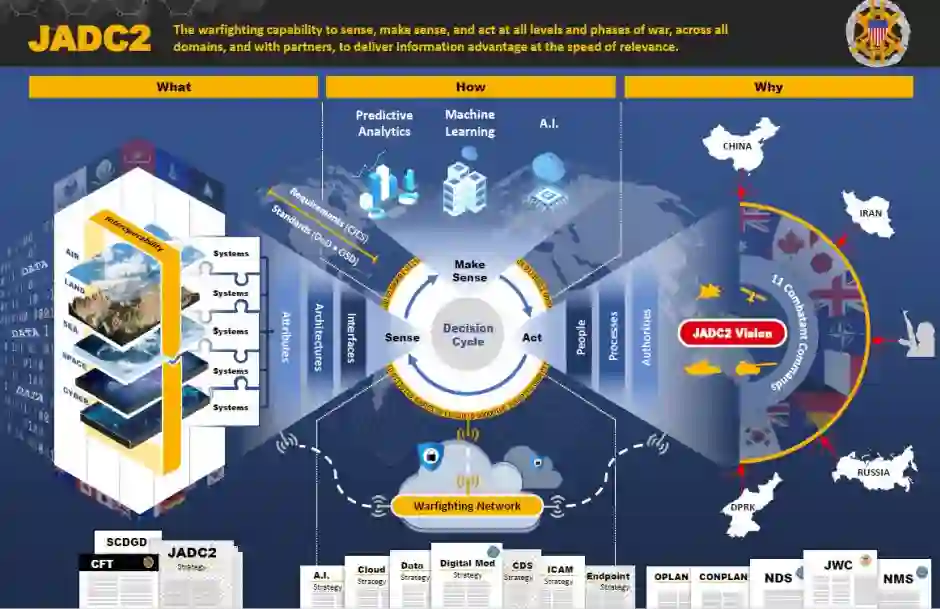 JADC2提供了一种方法来开发作战能力,以在所有领域和合作伙伴的各个层面和阶段感知、理解和行动,以相关的速度提供信息优势。
