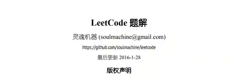 全书的代码,使用C++11的编写,并在LeetCodeOnline Judge上测试通过。本书中的 代码规范,跟在公司中的工程规范略有不同,为了使代码短(方便迅速实现):