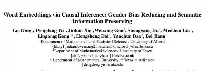 词向量被广泛应用于各类自然语言处理任务中,然而诸多研究已经表明词向量中存在着各种偏见(如性别或种族方面)。本文提出一种基于因果推理的方法,能够有效的消除词向量中的性别偏见并保留其他语义。具体的来说,本文提出了两种因果推理框架,分别用来消除词向量中的Potential proxy bias和Unresolved bias。实验表明,本文方法得到的词向量不但能够较好地消除词向量中的偏见,还能提高语义相关任务的表现。