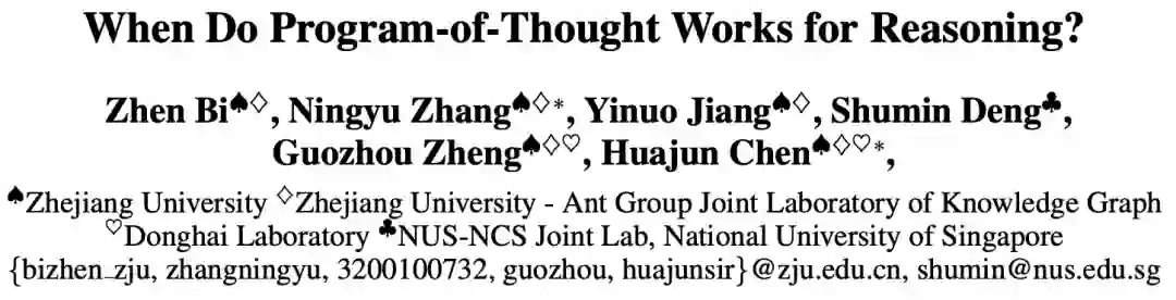 **论文题目:**When Do Program-of-Thought Works for Reasoning? **本文作者:**毕祯(浙江大学)、张宁豫(浙江大学)、姜一诺(浙江大学)、邓淑敏(新加坡国立大学)、郑国轴(浙江大学)、陈华钧(浙江大学) **发表会议:**AAAI 2024 **论文链接:**https://arxiv.org/pdf/2308.15452.pdf ****代码链接:https://github.com/zjunlp/EasyInstruct 欢迎转载,转载请注明出处