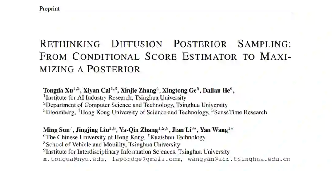 扩散后验采样的最新进展已被用于解决反问题,且无需额外的训练,其中扩散后验采样(DPS)(Chung等,2022a)是最流行的方法之一。先前的分析表明,DPS通过近似条件得分实现后验采样。然而,在本文中,我们展示了DPS使用的条件得分近似并不像以前所假设的那样有效,而是与最大化后验(MAP)原理更为一致。我们通过对512×512的ImageNet图像进行DPS实验来验证这一点,结果显示:1)DPS的条件得分估计显著偏离了经过良好训练的条件扩散模型的得分,甚至低于无条件得分;2)DPS的条件得分估计的均值明显偏离零,导致其成为无效的得分估计;3)DPS生成的样本质量较高,但多样性显著较低。基于上述发现,我们提出DPS更接近于MAP,而非条件得分估计器,因此建议对DPS进行如下改进:1)通过多步梯度上升和投影明确地最大化后验;2)使用仅通过100张图像和8个GPU小时训练的轻量化条件得分估计器。大量实验结果表明,这些提出的改进显著提升了DPS的性能。相关改进的源代码可在[此链接](https://github.com/tongdaxu/Rethinking-Diffusion-Posterior-Sampling-From-Conditi onal-Score-Estimator-to-Maximizing-a-Posterior)获取。