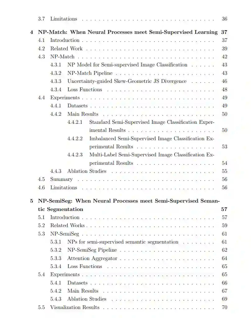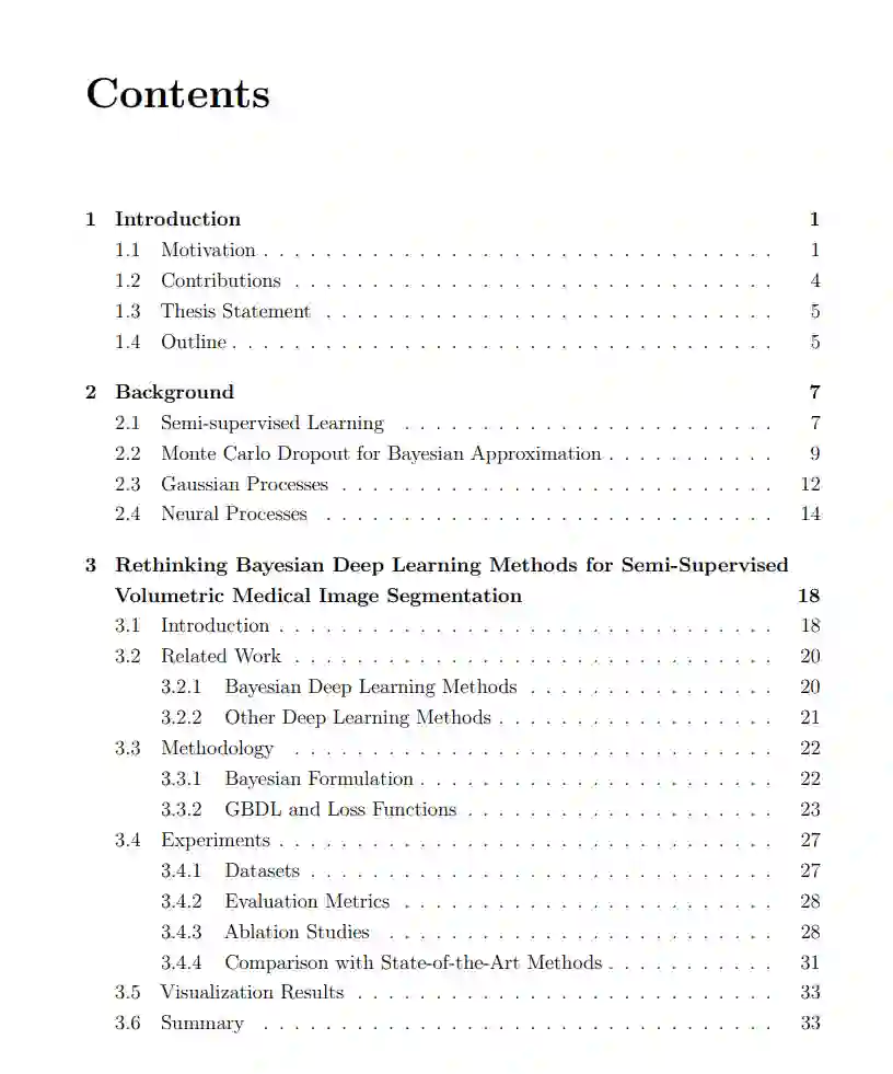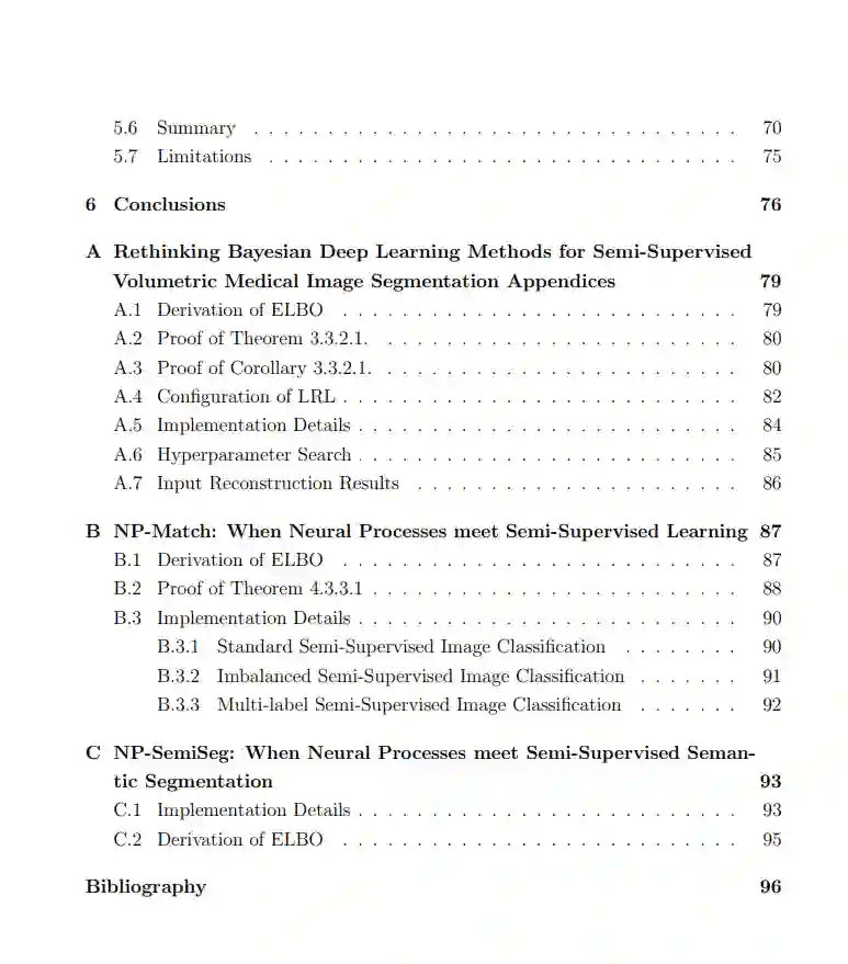 深度神经网络因其强大的性能,越来越多地应用于计算机视觉任务。然而,它们的训练需要大规模的标注数据集,而这些数据集的准备工作耗时费力。半监督学习(SSL)通过结合标注数据和未标注数据进行学习,提供了一种解决方案。虽然大多数最先进的SSL方法采用确定性方法,但对其概率模型的探索仍然有限。研究这一领域非常重要,因为概率模型可以提供不确定性估计,这在实际应用中至关重要。例如,由于未标注数据中的潜在伪标签错误,SSL训练的模型可能不如监督学习训练的模型,且这些模型在实践中更容易做出错误预测。特别是在医学图像分析和自动驾驶等关键领域,决策者必须了解模型的局限性以及何时可能出现错误预测,这些洞察通常由不确定性估计提供。此外,当使用未标注样本进行训练时,不确定性还可以作为过滤不可靠伪标签的标准,从而有可能提高深度模型的性能。本论文进一步探索了SSL的概率模型。借助广泛使用的贝叶斯近似工具——蒙特卡洛(MC) dropout,我提出了一种新的概率框架,即生成贝叶斯深度学习(GBDL)架构,用于半监督医学图像分割。这种方法不仅缓解了以往方法中潜在的过拟合问题,而且在四项评估指标上都取得了优异的结果。与其经验设计的前辈不同,GBDL以完整的贝叶斯公式为基础,提供了理论上的概率基础。鉴于MC dropout的局限性,我引入了NP-Match,这是一种用于大规模半监督图像分类的新概率方法。我们通过在不同挑战性环境下(如标准、不平衡和多标签半监督图像分类)的大量实验,评估了NP-Match的泛化能力。实验结果表明,NP-Match不仅与先前最先进的方法竞争力强,而且比基于MC dropout的模型更快地估计不确定性,从而提高了训练和测试的效率。最后,我提出了NP-SemiSeg,一种用于半监督语义分割的新概率模型。这个灵活的模型可以与各种现有分割框架集成,以进行预测和估计不确定性。实验表明,NP-SemiSeg在准确性、不确定性量化和速度方面都优于MC dropout。