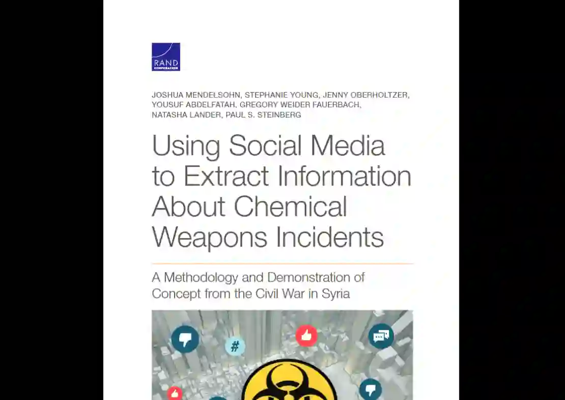 美国联邦政府的政策制定者已经开始认识到社交媒体作为信息来源的潜力,并委托研究探索社交媒体如何提高灾害态势感知、影响公众舆论、增强传统数据来源和打击虚假信息。在该项目中,兰德公司的研究人员开发了一种分析社交媒体数据的方法,以获取有关化学事件的见解,并通过将该方法应用于 2017 年至 2018 年间在叙利亚使用化学武器的案例,对该方法进行了概念验证。