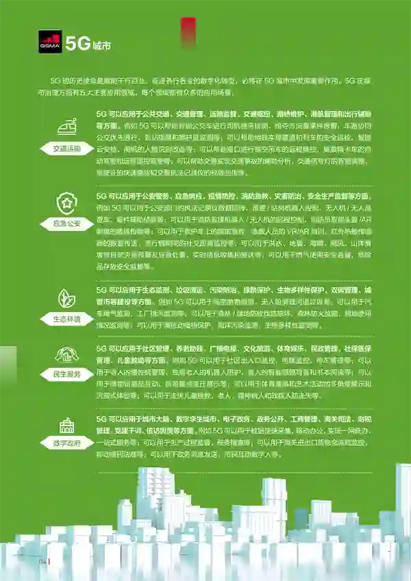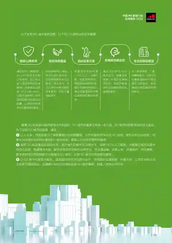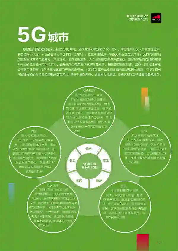 根据世界银行数据显示,截至2020年底,全球城镇化率达到了56.15%;中国的第七次人口普查也显示,截至2020年底,中国的城镇化率达到了63.89%。 目前,5G在全球已经得到广泛部署,5G的基站数和用户数快速增长,然而5G在行业应用方面仍面临规模化难题,而5G在城市治理方面的应用已经呈现出百花齐放、争奇斗艳的态势,有望成为突破点,率先实现5G行业应用的规模化。 https://www.gsma.com/greater-china/wp-content/uploads/2022/03/GSMA%E4%B8%AD%E5%9B%BD5G%E5%9E%82%E7%9B%B4%E8%A1%8C%E4%B8%9A%E5%BA%94%E7%94%A8%E6%A1%88%E4%BE%8B2022.pdf