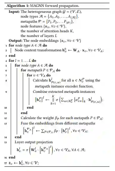 摘要: 大量真实世界的图或网络本质上是异构的,涉及节点类型和关系类型的多样性。异构图嵌入是将异构图的丰富结构和语义信息嵌入到低维节点表示中。现有的模型通常在异构图中定义多个元数据来捕获复合关系并指导邻居选择。但是,这些模型要么忽略节点内容特性,要么沿着元路径丢弃中间节点,要么只考虑一个元路径。为了解决这三个局限性,我们提出了一种新的集合图神经网络模型来提高最终性能。具体来说,MAGNN使用了三个主要组件,即,节点内容转换封装输入节点属性,元内聚合合并中间语义节点,元间聚合合并来自多个元的消息。在三个真实世界的异构图数据集上进行了大量的节点分类、节点聚类和链路预测实验,结果表明MAGNN的预测结果比最先进的基线更准确。