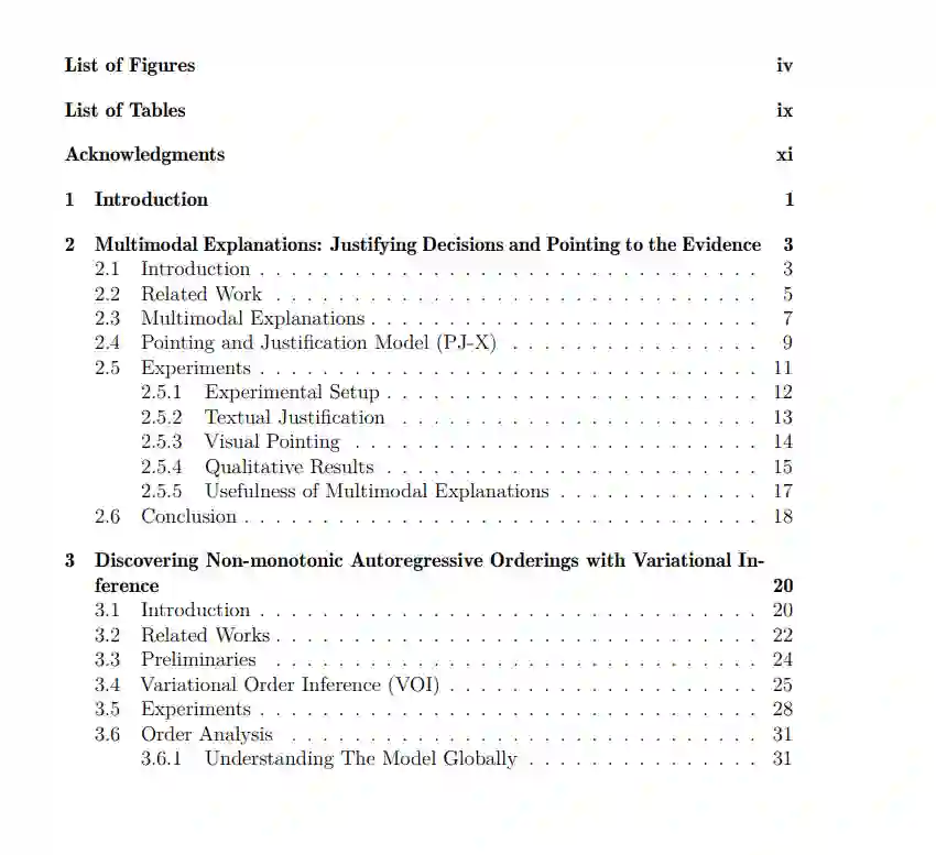 第1章和第2章深入探讨了图像到文本领域,强调了文本生成的多模态方法的重要性。在第1章中,我们探讨了如何通过关注视觉化来生成文本理由,以增强视觉问答模型的透明度。在第2章中,我们构建了放弃传统自左向右序列化的生成模型,转而采用一种无监督技术来确定最优生成顺序。第3章和第4章将焦点转移到文本到图像生成。在第3章中,我们引入了一个无需训练的框架,它结合了语言线索和参考图像,允许使用去噪扩散概率模型进行可控的图像合成。最后,在第4章中,我们强调了在基于文本的图像编辑中保留对象形状的重要性,提出了一种独特的机制,使得文本到图像的模型更忠实于输入掩码和文本提示。