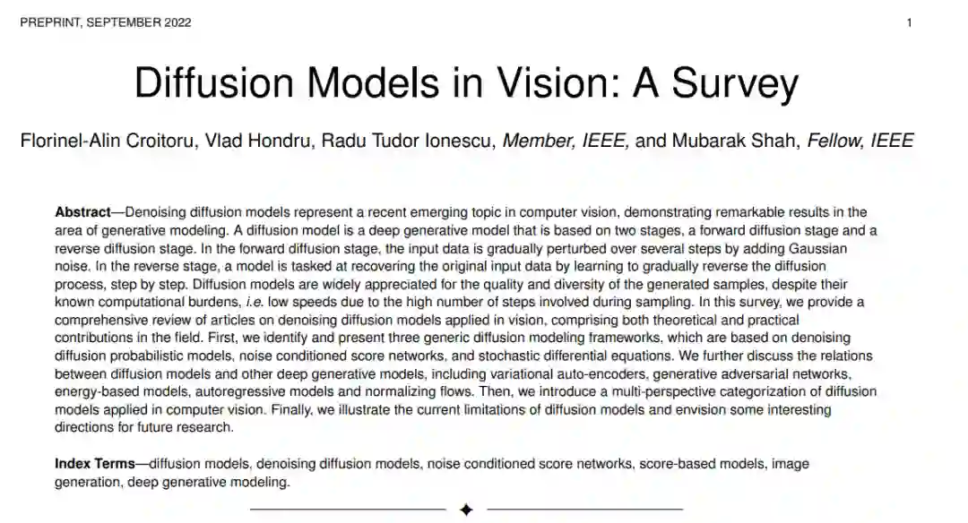 **大“火”的扩散模型综述又一弹!UCF等《视觉扩散模型》综述,20页pdf详述三种通用的扩散建模框架 **