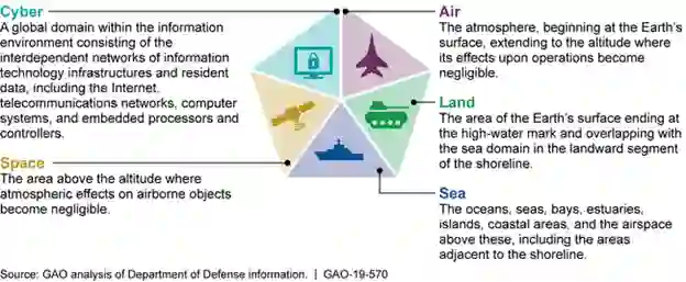 为了理解人工智能与国防部门之间的关系,首先需要理解和定义 “战争领域” 这一概念。这些领域包括武装部队为实现其战略目标而参与冲突的各种物理和虚拟空间。主要领域包括陆、海、空、天和网络,每个领域都具有独特的特点,需要专门的战术、技术和战略。