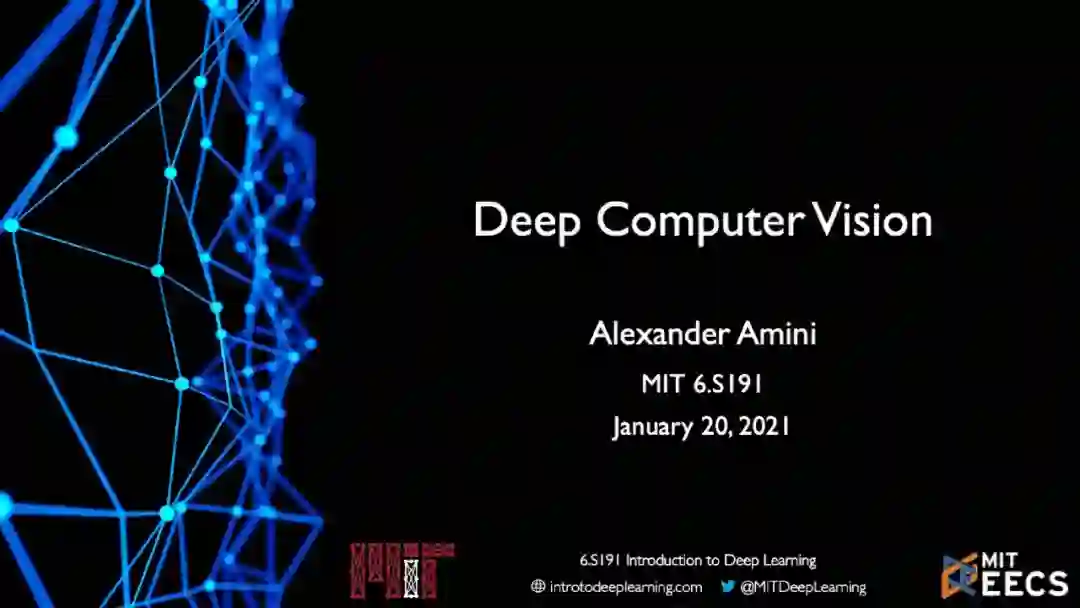 【导论】麻省理工学院最近开设一门深度学习课程MIT 6.S191,共包含十大主题课程,涵盖深度学习导论、序列建模、深度视觉、生成模型、强化学习、图神经网络、对抗学习、贝叶斯模型、神经渲染、机器学习嗅觉等,图文并茂,涵盖最新的前沿内容,非常值得学习!最新一讲是深度计算机视觉。