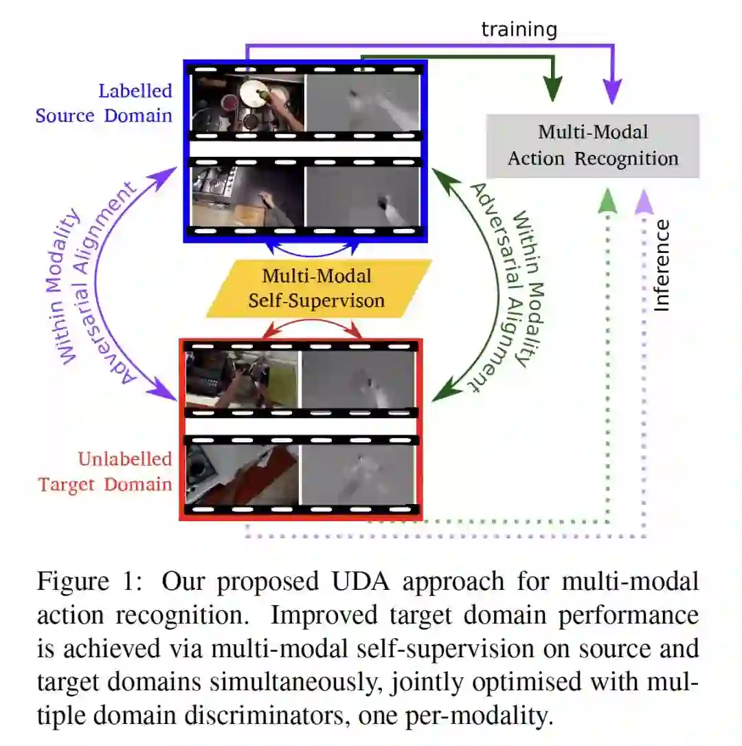 摘要:细粒度行为识别数据集存在出环境偏差,多个视频序列是从有限数量的环境中捕获的。在一个环境中训练模型并在另一个环境中部署会由于不可避免的域转换而导致性能下降。无监督域适应(UDA)方法经常利用源域和目标域之间进行对抗性训练。然而,这些方法并没有探索视频在每个域中的多模式特性。在这项工作中,除了对抗性校准之外,我们还利用模态之间的对应关系作为UDA的一种自监督校准方法。