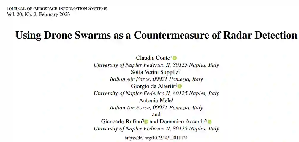从舰载机上部署无人机蜂群可支持关键行动,在这些行动中,目标飞机应受到地面雷达探测的保护。作为一种成功的反制手段,蜂群无人机必须配备适当的有效载荷系统,蜂群单元之间的几何形状也必须经过精心设计。本文介绍了按比例无人机蜂群几何结构的开发情况,该蜂群可通过电磁屏蔽雷达探测到的目标。对不同的无人机蜂群配置进行了分析,以选择一个可行的解决方案进行地面和飞行测试。在测试过程中,使用紧凑型软件雷达探测目标无人机。执行了几次地面测试,以确定安装在木制三脚架上的目标无人机的雷达回波响应特征。在三脚架上测试了不同几何形状的角反射器,以选择能更好地遮挡目标无人机的蜂群几何形状。对装有角反射器的诱饵无人机和目标无人机进行了飞行测试,以验证所提出的无人机蜂群几何形状。所提出的无人机蜂群几何设计使我们能够确定无人机群单元之间以及无人机群与目标之间的比例距离,这些距离必须能够防止地面雷达探测。