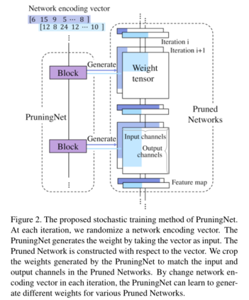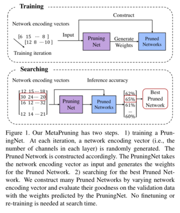 摘要: 在这篇论文中,我们提出了一种新的元学习方法来自动修剪非常深的神经网络的通道。我们首先训练一个剪枝网络,这是一种元网络,它能够为给定目标网络的任何剪枝结构生成权重参数。我们使用一种简单的随机结构抽样方法来训练剪枝网络。然后,我们应用进化过程来搜索性能良好的修剪网络。由于权值是由经过训练的剪枝网络直接生成的,因此在搜索时不需要进行任何调整,因此搜索效率很高。通过对目标网络的单一剪枝网络进行训练,我们可以在不需要人工参与的情况下搜索不同约束条件下的各种剪枝网络。与最先进的修剪方法相比,我们在MobileNet V1/V2和ResNet上表现出了优异的性能。