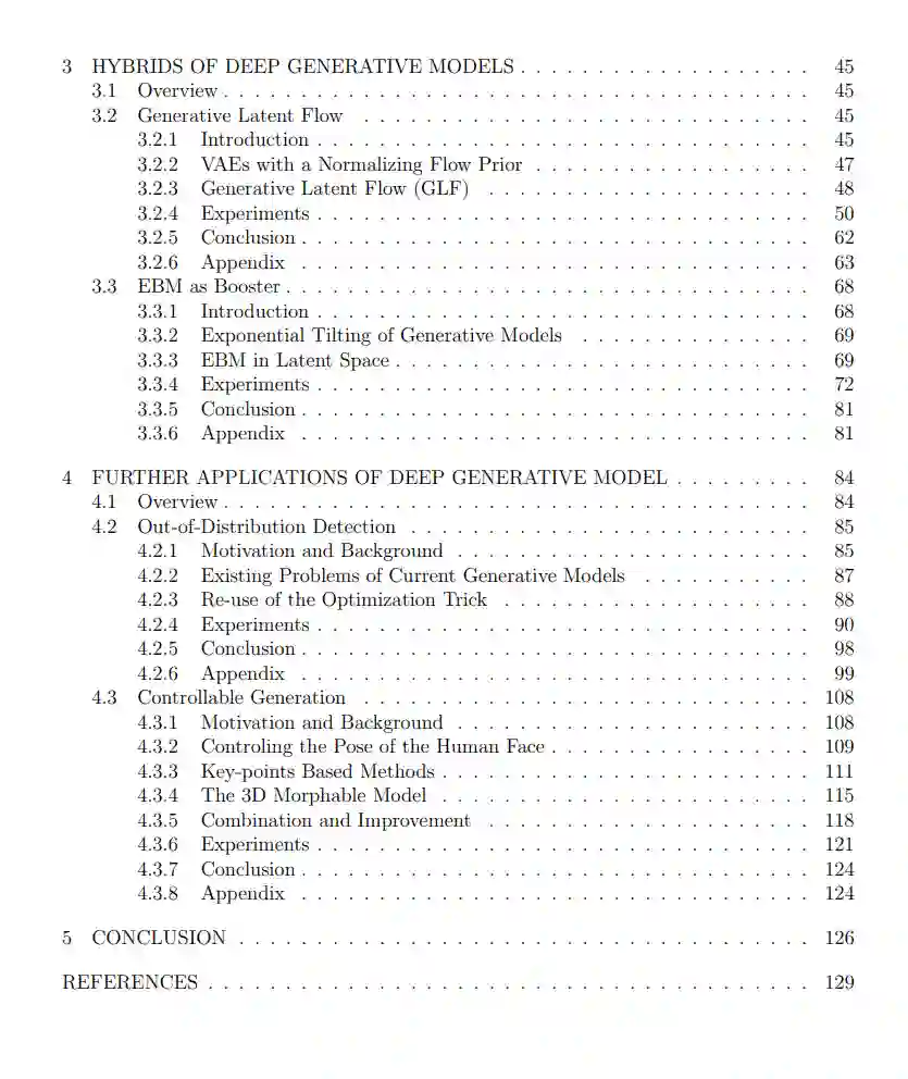 最后,我们进行了与现代深度生成模型相关的各种应用,包括将生成模型用作基于似然性方法的离群分布(OOD)检测,并设计了可控的人脸生成模型。我们提出了一种新的OOD检测分数,称为似然性遗憾,以帮助使用VAE检测OOD样本。此外,我们建议在当前基于关键点的人脸重演模型中添加新结构,并将其与3D可变模型相结合,以提高其生成质量和泛化能力。