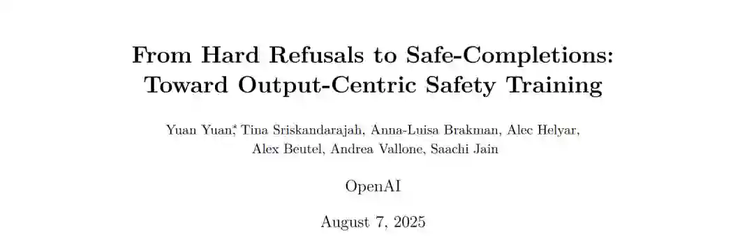 用于 ChatGPT 的大型语言模型(Large Language Models, LLMs)传统上被训练以学习“拒绝边界”(refusal boundary):根据用户意图,模型被教导要么完全响应,要么直接拒绝。虽然这种方式对显式的恶意提示具有较强的缓解效果,但当用户意图被刻意隐藏时,将安全训练聚焦于拒绝机制可能导致模型表现脆弱。二元的拒绝边界尤其不适合“双用途”(dual-use)场景(如生物学或网络安全),在这些情况下,用户请求可以在较高抽象层面安全地回答,但在某些情形下,如果回答过于详细或可执行,可能会引发恶意用途的提升。 作为替代方案,我们提出了安全完成(safe-completions):一种以助手输出的安全性为核心、而非对用户意图进行二元分类的安全训练方法。安全完成旨在在遵循安全策略约束的前提下,最大化模型的有用性。我们将该方法整合到 GPT-5 中,并在生产环境对比测试和内部可控实验中发现,安全完成训练能够提升安全性(尤其是在双用途提示上)、降低残余安全失效的严重程度,并显著提升模型的有用性。