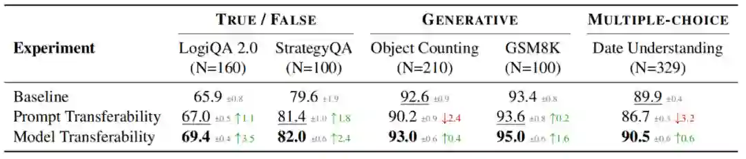 此外,在迁移泛化测试中,RiOT 所优化的提示词在提示词迁移场景(即为一种模型优化的提示词能够直接应用于另一种模型)及模型迁移场景(即更换不同的目标模型)下均保持稳定增益,进一步验证了其语义稳定性与模型适配能力。