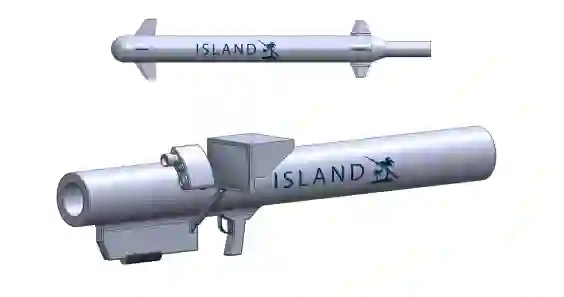 ISLAND导弹是一种低成本导弹系统,专门设计用于摧毁1类和2类无人机。其设计射程为3.5海里,设计高度为5000英尺。该系统的设计自下而上以用户安全为核心。通过采用定制化的第一级低噪音火箭发动机及多种降噪技术,发射噪音被控制在峰值151分贝以下。ISLAND的噪音水平远低于同类系统。通过使用可抛式发射发动机,有效降低了发射加速度和尾气冲击。ISLAND导弹系统的目标在于防止不对称战争,特别是针对小型无人机目标。低成本导引头、简易材料和商用现成可抛式发射发动机使ISLAND能够达成目标,采购价仅为35,000美元。进一步采购ISLAND系统可将价格压缩至25,000美元以下,价格与雷神公司郊狼导弹相当,且比毒刺导弹便宜10,000美元以上。ISLAND导弹及发射器的3D CAD渲染图如下所示。