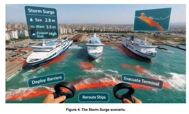 海港是商业、物流和经济发展的重要枢纽。然而,由于其毗邻海岸,它们面临着侵蚀、严重风暴和海平面上升的威胁。这些风险威胁着关键基础设施,导致运营延误,并造成巨大的经济损失。对于气候引起的海岸线变化,复杂精密的实时和预测性监测系统对阿尔巴尼亚最大的海港、也是亚得里亚海的关键战略门户——都拉斯港而言,尤为重要。数字孪生建模的最新进展,结合沉浸式增强现实和虚拟现实界面,提供了有前景的解决方案。为了加强海岸安全管理,本研究提出了一个将沉浸式可视化与远程监测及基于物联网的传感相集成的系统。在都拉斯港实施这样一个精密的监测系统,符合欧盟“绿色协议”关于可持续基础设施的重点领域,也与全球海洋数字化发展趋势相一致[3]。所提出的系统通过使用全面的沉浸式决策支持系统、对环境条件的实时感知和预测分析,提升了海上安全性,并协助气候适应战略的实施。此外,该项目可成为亚得里亚海和地中海其他港口的范例,促进港口间在环境和海上风险管理方面的协作。